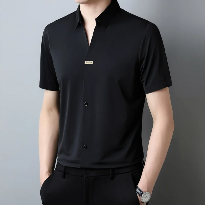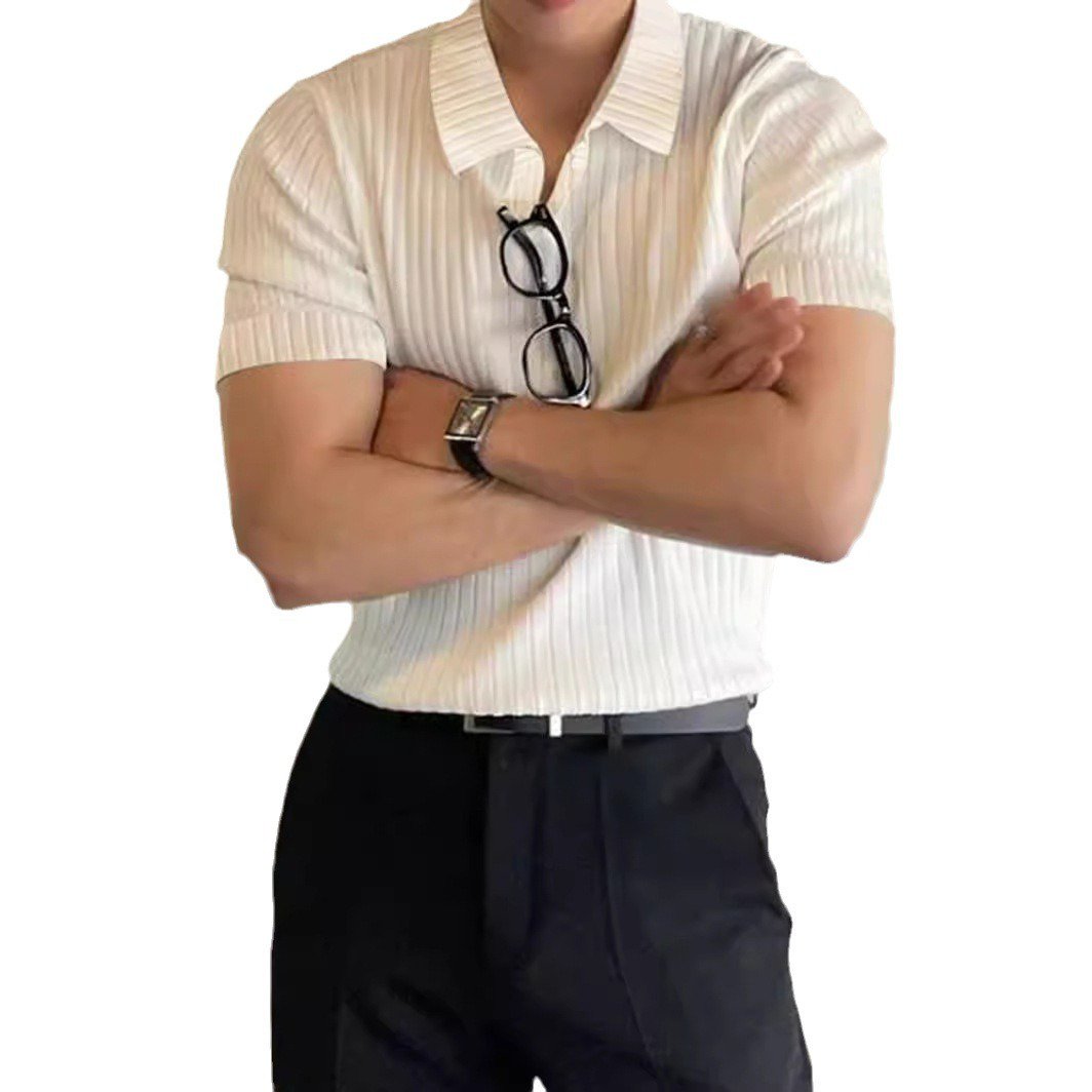 قميص بولو راقي عصري بياقة وطية بأكمام قصيرة 【قماش مجدول بارد الملمس】