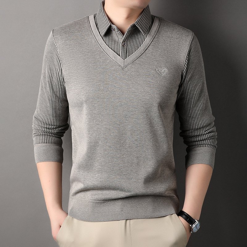 سترة منسوجة كلاسيكية بياقة قميص للربيع والخريف للرجال